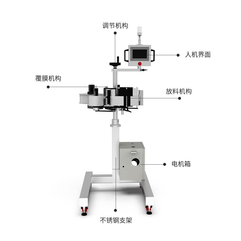 可配套到流水線,對流過的產品,進行上平面、弧面的貼標,實現在線貼標,如配套到噴碼輸送帶,對流過的物體貼標。