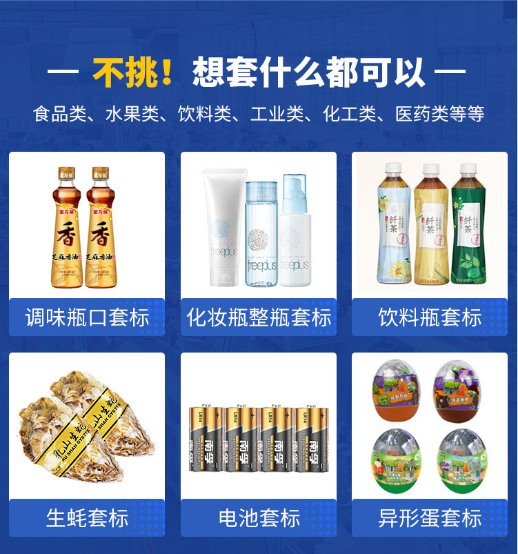 2.適用于碗裝、桶裝方便面、杯裝果奶、杯裝奶茶、掛面、饃片、消毒(一次性)餐具、牙膏、化妝品、蚊香、電池等外層熱收縮包裝。